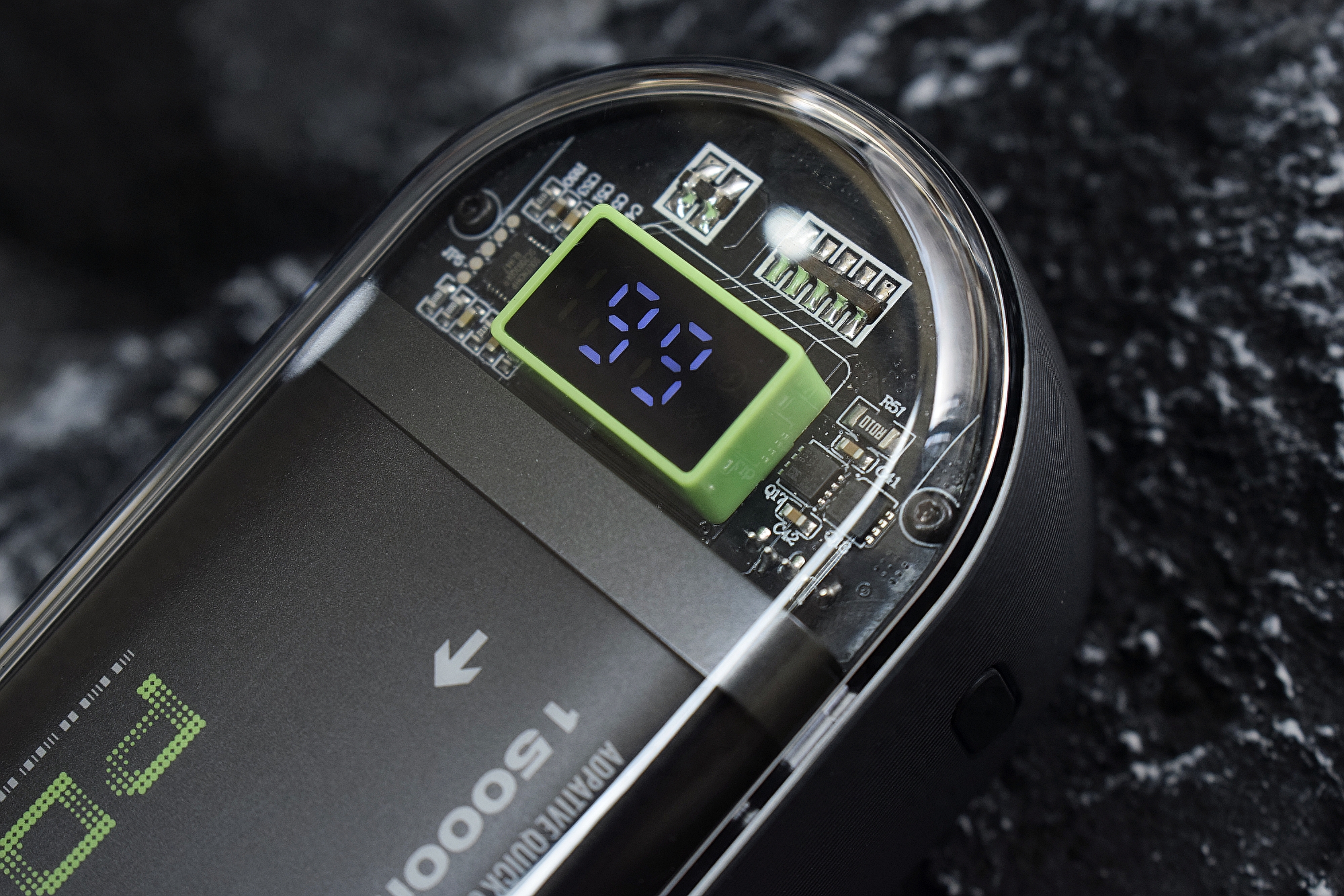 太空舱身正中最瞩目的当数LED数显屏,可以实时显示剩余电量。不过个人希望后继机型屏幕能更大些,显示内容能更丰富些,比如可显示当前接入的设备数、充电功率等就更完美啦。