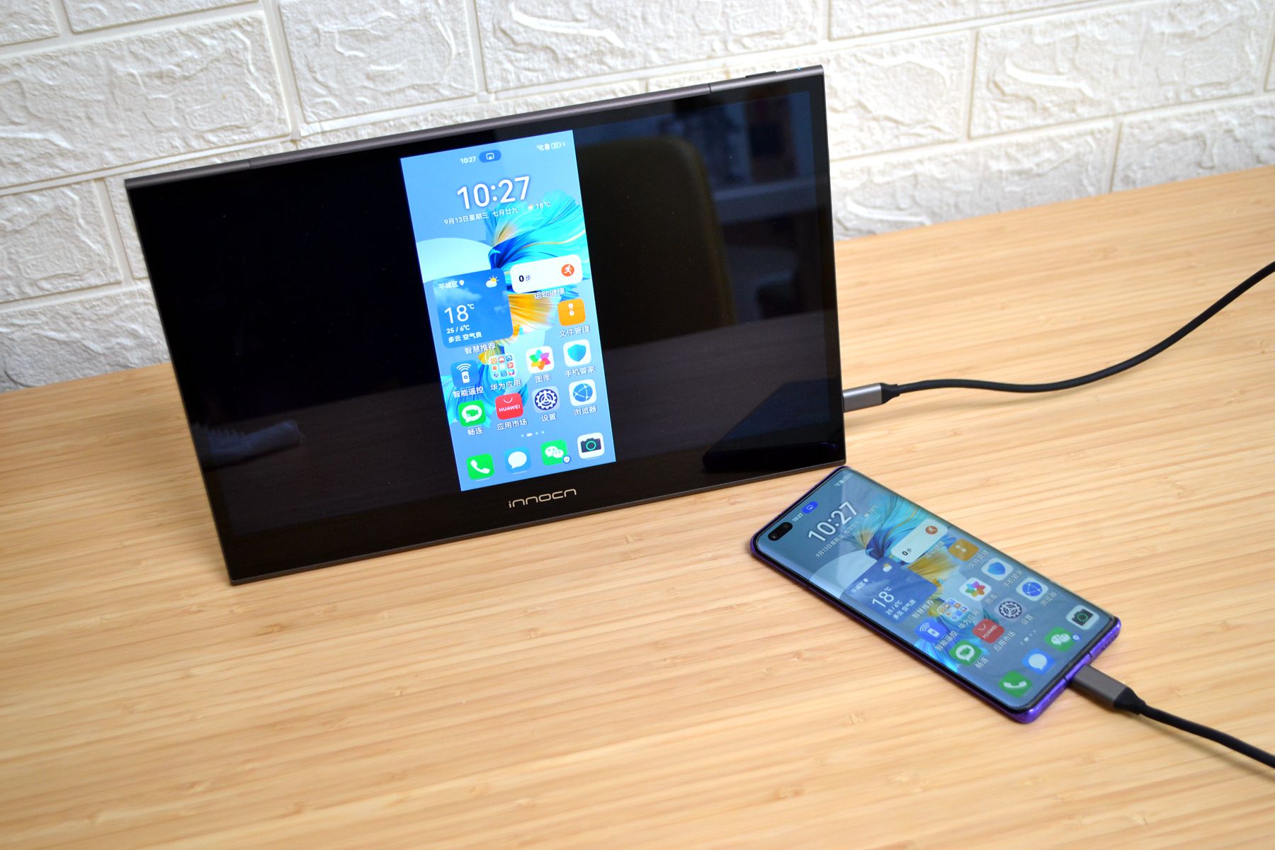 为什么一定要有一线连,我手里有一台13英寸的联合创新的便携屏,手里有台荣耀30Pro,用的是鸿蒙3.0系统,通过一线连接入便携屏,就可以把手机同屏到屏幕上了,联合创新13Q1F这台便携屏还支持触控,比起手机的屏幕大多了,同屏用很方便,另外华为的鸿蒙系统有很好用的PC模式,也是通过一线连实现的,切换到PC模式,手机就能变成电脑一样去用。