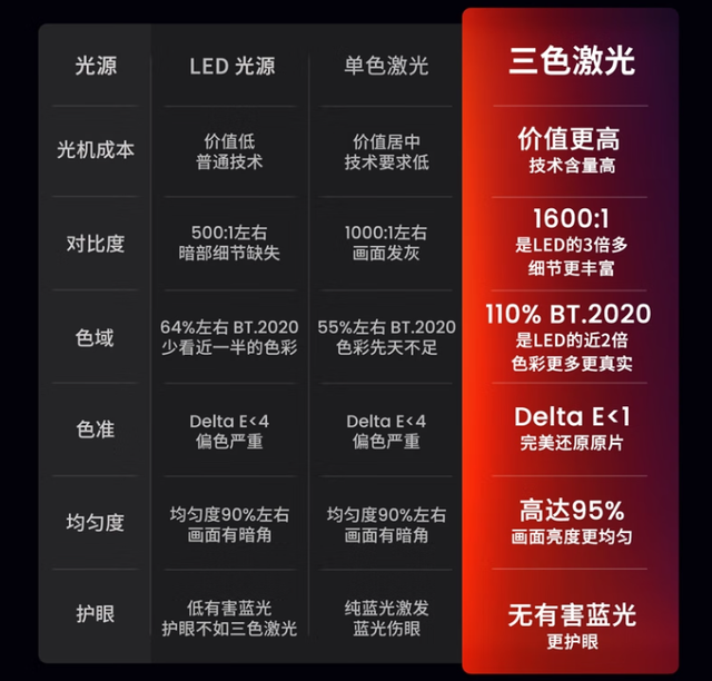 对于我这个科技控来说,入手投影仪最先关注首先是它的观影画质,这款投影仪搭载坚果自研的MALC目氪™三色激光光机。相比于传统的LED光源,三色激光的光源亮度要更高,投射出的画质也要更为细腻。相同的功率下,三色激光的光效、对比度都要比LED高出三倍,色域也高出两倍,因此在整体视觉效果上要突出不少,同时也更节能。而体验一段时间后,N1 Ai确实比我之前用的同等价位的LED投影仪好很多。