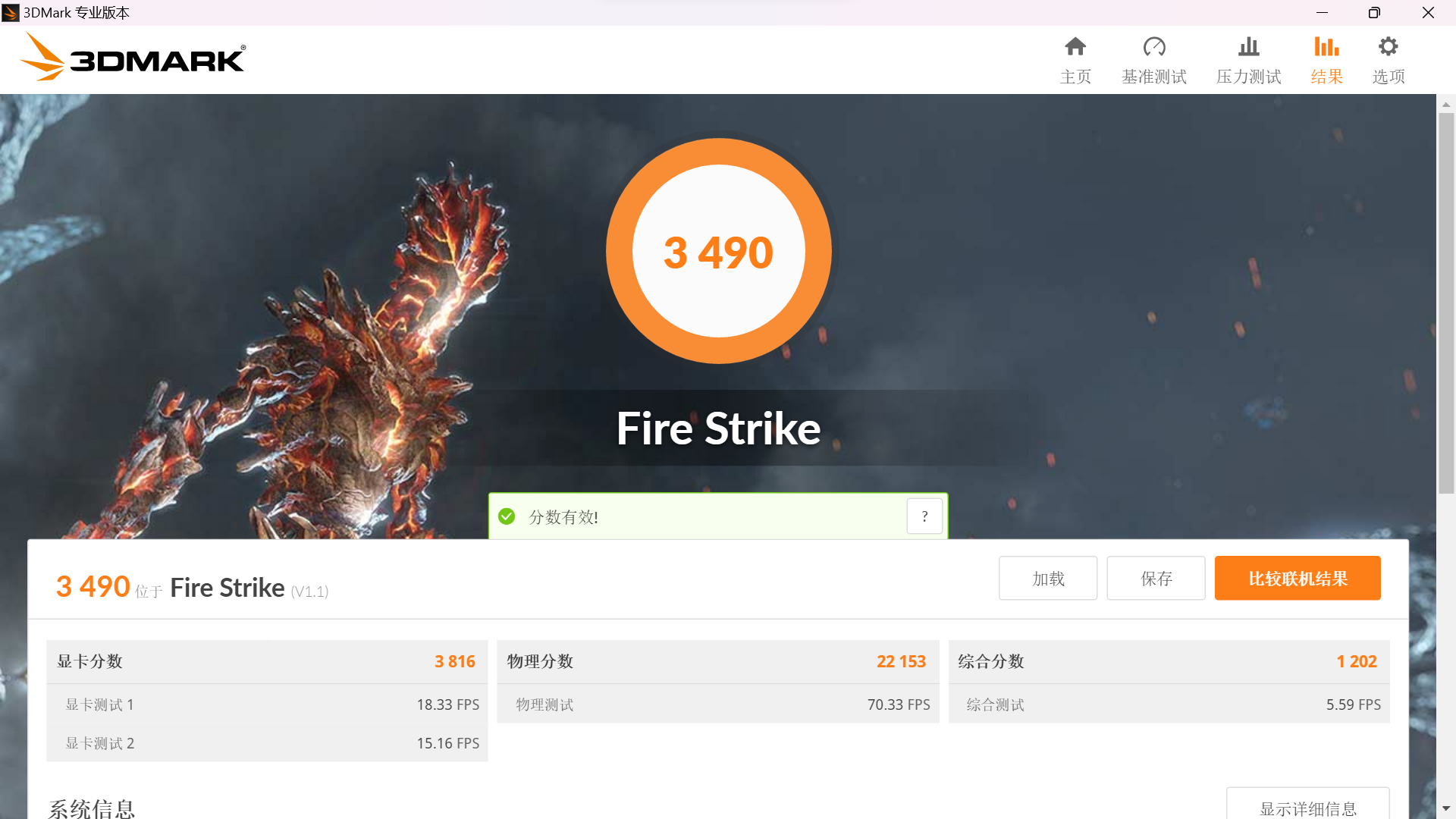 在3DMark测试当中,Time Spy 1345,Fire Strike 3490,Sky Diver 12838,CineBench R23单核跑分1221,多核跑分10088,看得出性能相较于笔电平台的1165G7要差一些,但已经好于酷睿i9-9880H了。