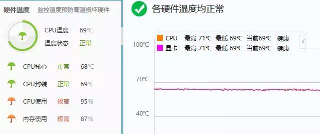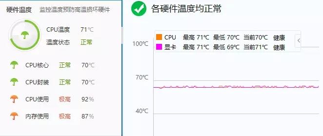 笔记本玩游戏发热,最大的原因莫过于是处理器和显卡的过载,从而使得笔记本原本的散热系统跟不上,温度越积越高,最后硬件高温保护而降频变卡。