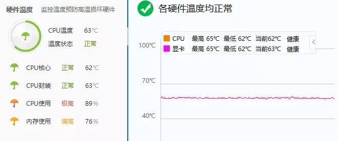 而大风叶也不赖,笔记本电脑被架高后加上直吹,温度稳定在了 65°C 左右,已经算是个不错的成绩了。