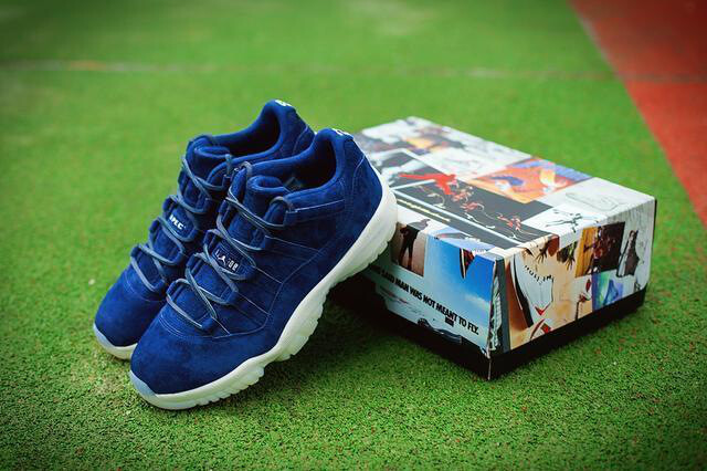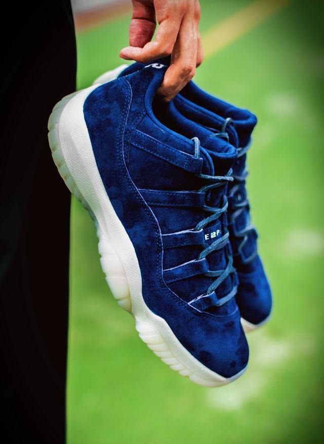 回到今天的主题上,这款AJ 11 Low全身采用蓝色麂皮打造奢华感十足,因此发售价要比一般的AJ 11要高,鞋后跟数字2代表Jeter本人的号码,在右鞋舌面上还有“RE2PECT”把数字2巧妙的加在英文Respect(尊重)里,示意向Jeter致敬,整款鞋可谓是细节满满。