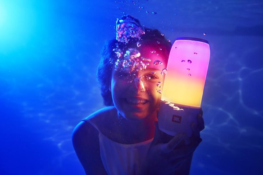 再者PULSE 3采用IPX7防水设计,盖好防水盖之后就可以直接放置在水中了,丝毫不用担心音响会进水。PULSE 3底部有3个40mm的扬声器,形成360度的立体环绕声,再加上20W的输出功率,使你能沉浸在音乐氛围之中。在夜晚的沙滩边,摆上几个光污染的PULSE 3,绝对能让一场聚会提升不少乐趣。