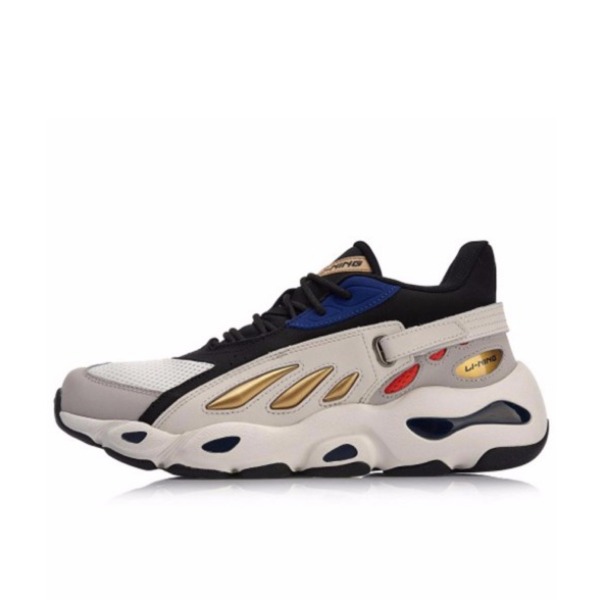 以 2004 年奥运会中国代表团领奖鞋极光为蓝本打造,延续了红蓝渐变的鞋面线条和超大 Logo 设计,继承纯正的复古风格。皮质鞋面延续了李宁一贯的良心用料,彰显奢华的质感呈现。