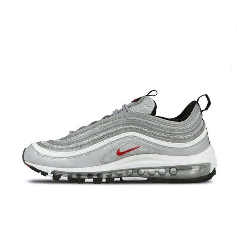 子弹配色 Nike Air Max 97 “Silver Bullet”,因为流线的外形,动感十足的配色,成为了人们穿搭的首选,鞋身的 3M 反光效果也是它成为吸睛神器的最大保证!