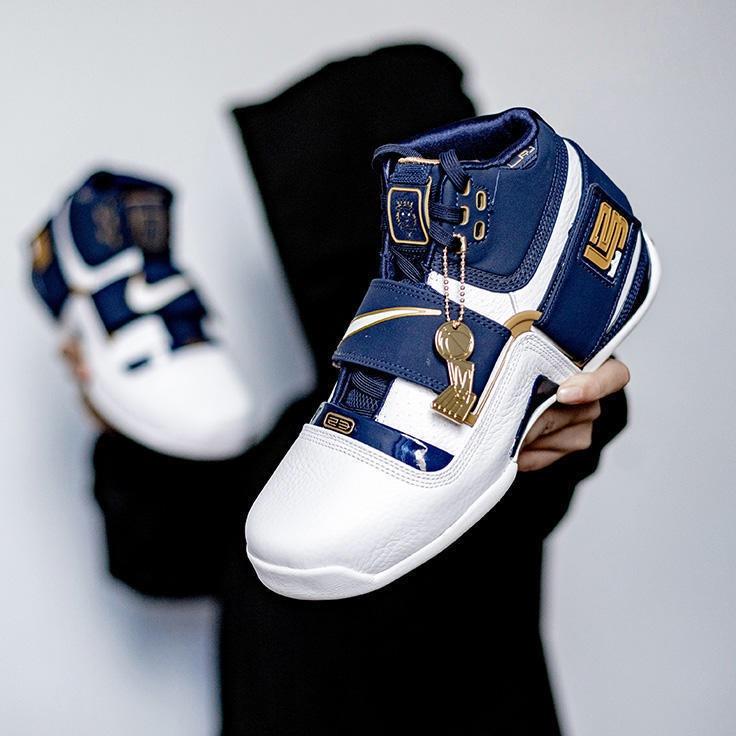 另一双Nike Soldier 1则是为了纪念勒布朗在2007年季后赛中的不俗表现,白色的鞋头搭配海军蓝的绑带与内衬,金色的詹姆斯“23”Logo也随着球鞋回归。这两双具有王者气息的复古篮球鞋也让我们再一次追忆那些年的匆匆篮球时光。