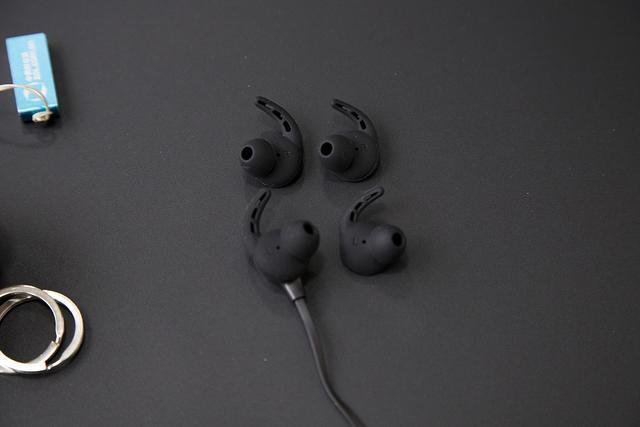 产品赠送的L和S号耳翼。细心的读者肯定可以发现,耳机塞是与耳翼连城一体的,这样做的好处就是再次增加了耳机的防水和密闭性,不过缺点就是如果你手头有很多的耳机塞,没法更换到这个产品上,对于不能尝试自己喜欢的耳机塞子,比如海绵c套,可能略显遗憾。