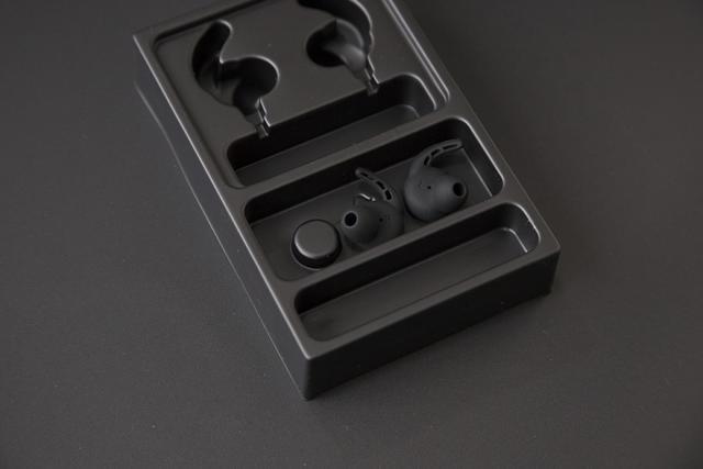 耳机内层采用侧拉抽屉式,横向轻拉就可以打包包装盒,耳机和配件便一览无遗地陈列在聚乙烯内衬,不禁给笔者一种虽小巧但精悍的感觉。