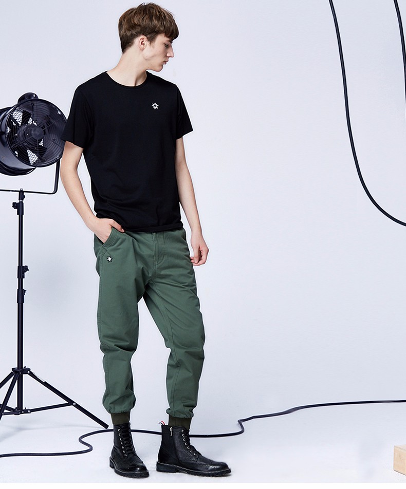 推荐理由:这条休闲裤,拥有利落线条下的时尚简约版型,裤脚处的收口设计拼接罗纹针织面料,很有街头风格之感。尺码方面最小只有M码,挺可惜的。