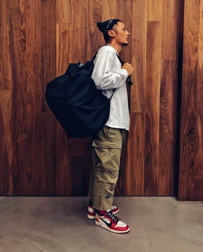潮男余文乐曾穿着它来凹造型,灰色宽松的棉质T恤,搭配绿色工装裤,再配上一定黑色的针织帽,简单无难度的搭配,饱和度极低的色彩搭配,只一双红黑白撞色AJ1来点亮全身的色彩。