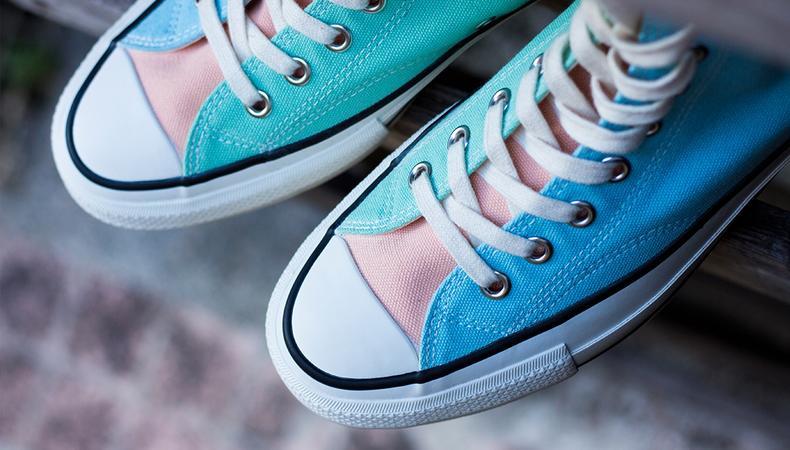 同样有着带货王之称的还有我们熟悉的 EDC,作为潮流达人以及品牌创始人的他,看上以及上脚的鞋款肯定不会简单,这款彩色拼接的 Converse Addict 就是其中之一,清新可爱的配色,通过拼接的方式营造一种色彩的碰撞,鲜明亮眼。(别说 EDC,感觉喜欢匡威的老粉都抗拒不了它~)