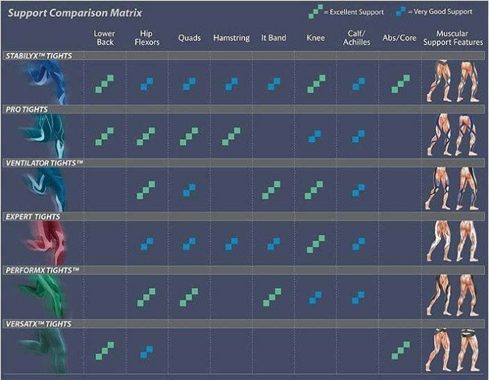 CW-X的压缩衣压缩裤相对比较注重支撑性,而各个系列则以对不同部位的支撑划分。