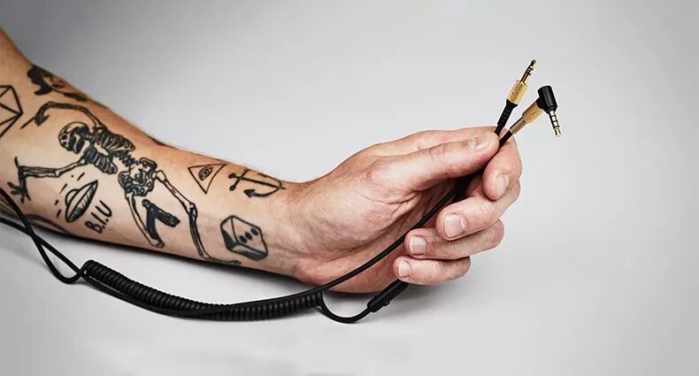 你也可以选择有线连接耳罩的两侧,各有一个 3.5mm 的耳机插。你可以利用复古的「电话线」连接电脑、手机,出门回头率飙升。