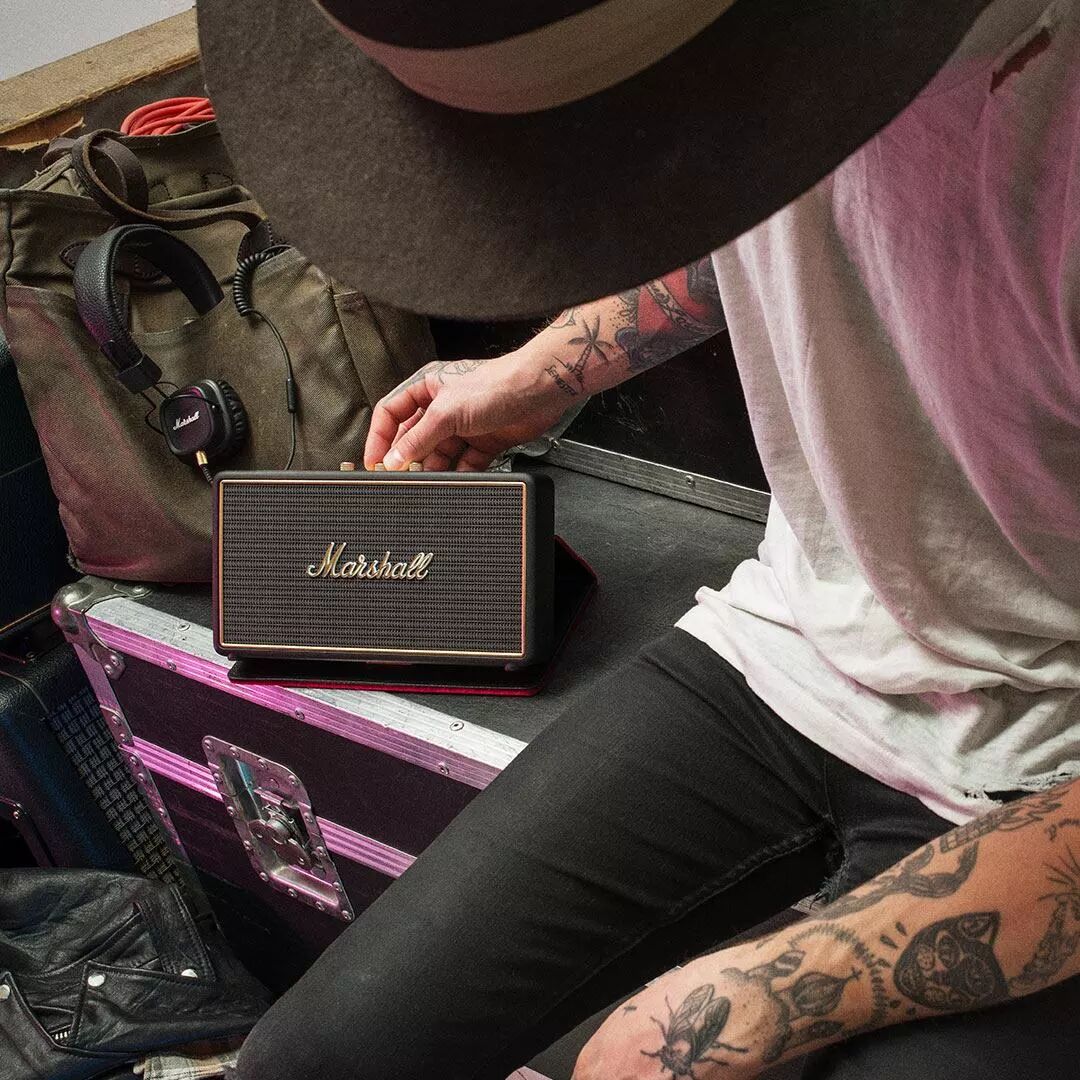 更小巧,更精致如果音箱的体积、重量,才是你的终极最求。那就不能错过下面这个组合!STOCKWELL 是 Marshall 新推出的一款便携式无线蓝牙音箱。是 Marshall 推出过最小巧的音箱。重量只有 1200g,大约相当于一支大瓶装的矿泉水。
