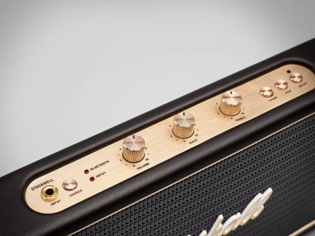 别看 STOCKWELL 的新功能多多,外貌上,它还保持着 Marshall 的经典造型。复古的方形设计,四边裹着黑边,质感爆灯。