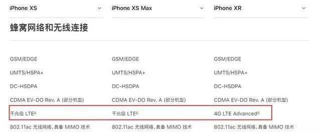 iPhone XR作为今年新发布iPhone中最便宜的那一款,无疑就是iPhone XS的缩水版。甚至在苹果官网,对iPhone XR的网络描述都是“4G LTE Advanced”,而iPhone XS的网络描述都是“千兆级 LTE”。这样看来,iPhone XR应该是使用的老款英特尔基带,所以因缩水得福?