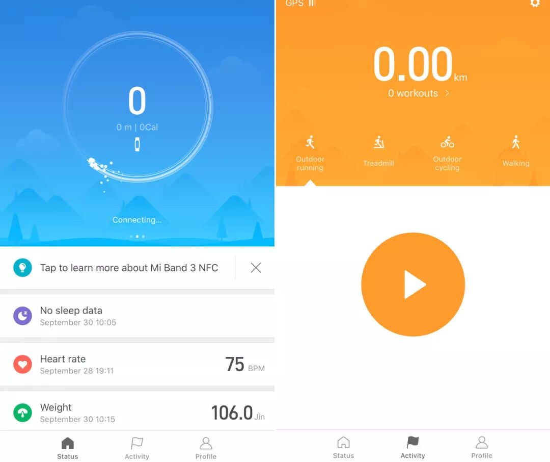 至于运动监测方面,小米手环 3 NFC 版可记录跑步、骑行、健走三项运动的数据。而 Apple Watch 还支持识别游泳、瑜伽、徒步等多项运动的监测,功能更全面。