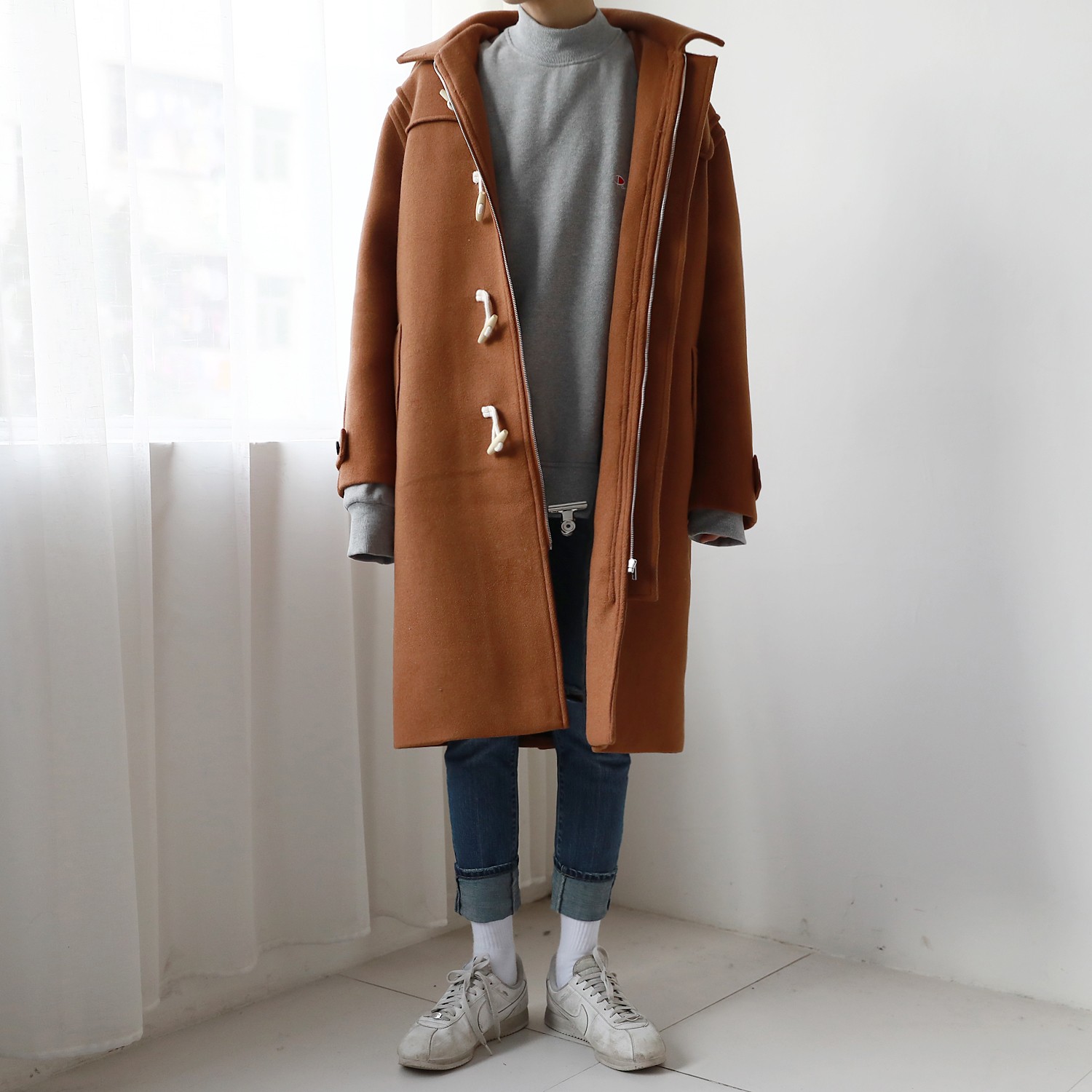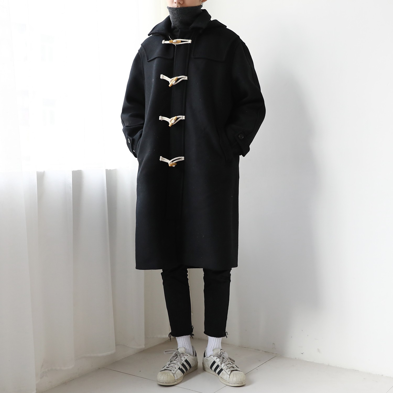 同样来自英国品牌 GLOVERALL 的粗呢牛角扣大衣,作为其知名的经典款式,融入了传统与现代结合的设计,简约而不简单。80%英格兰羊毛搭配纯天然牛角扣,产地英国,做工精细。