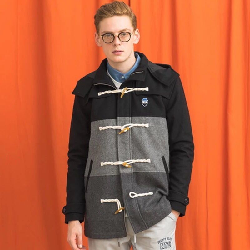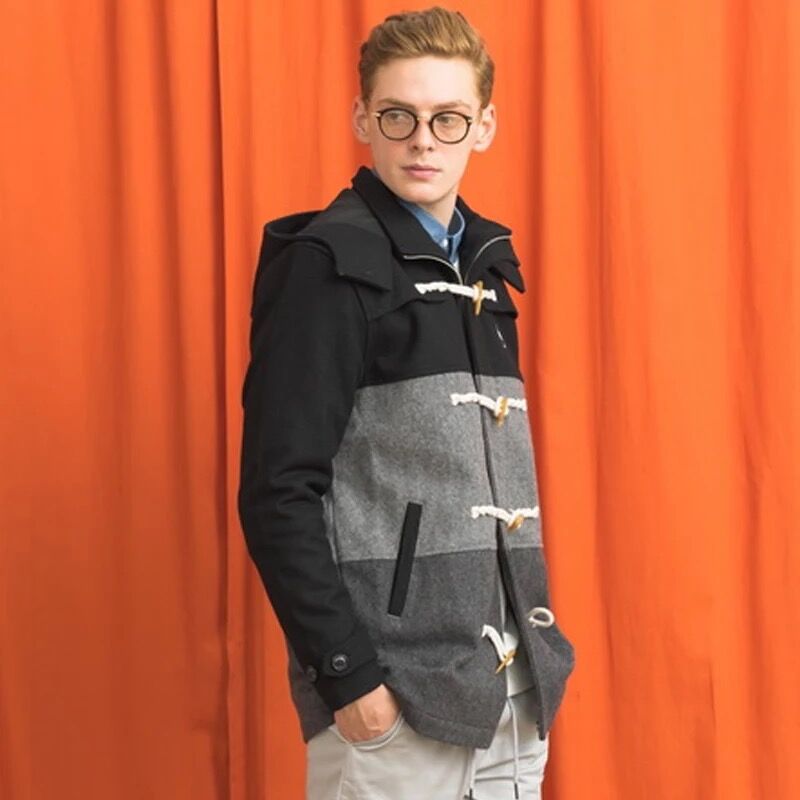 BANGBOY 牛角扣拼色毛呢大衣