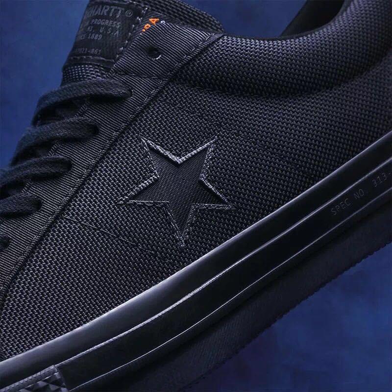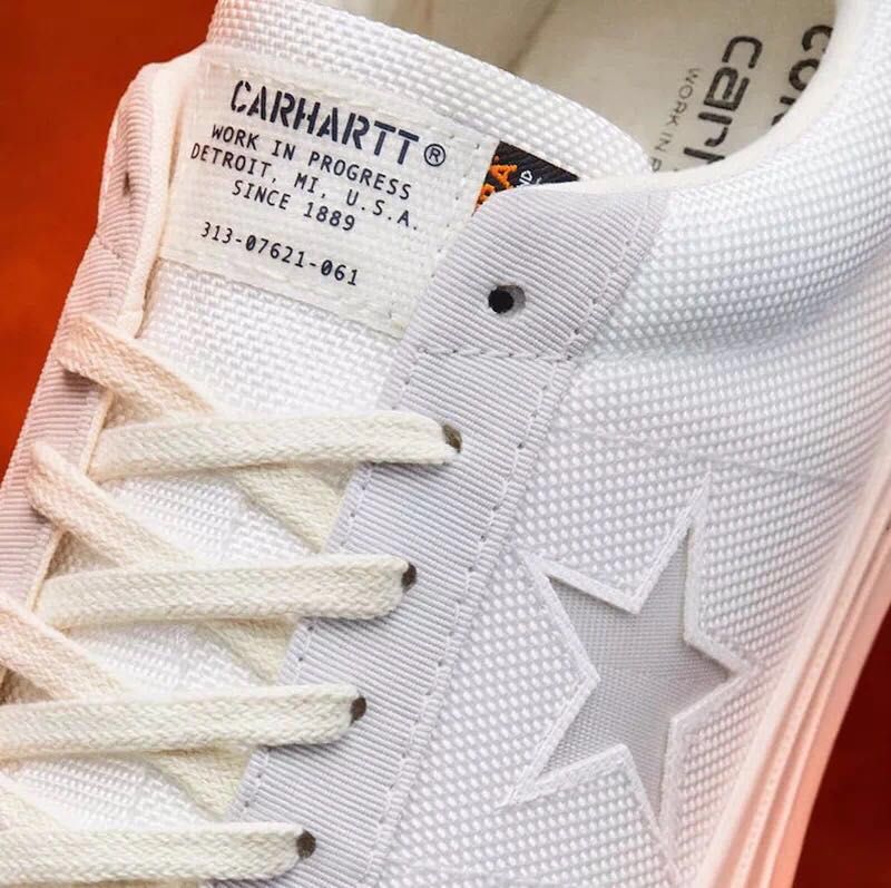 知名工装品牌Carharrt与Converse再次联名,本次的联名合作款式中的 黑、白、军绿三款配色。