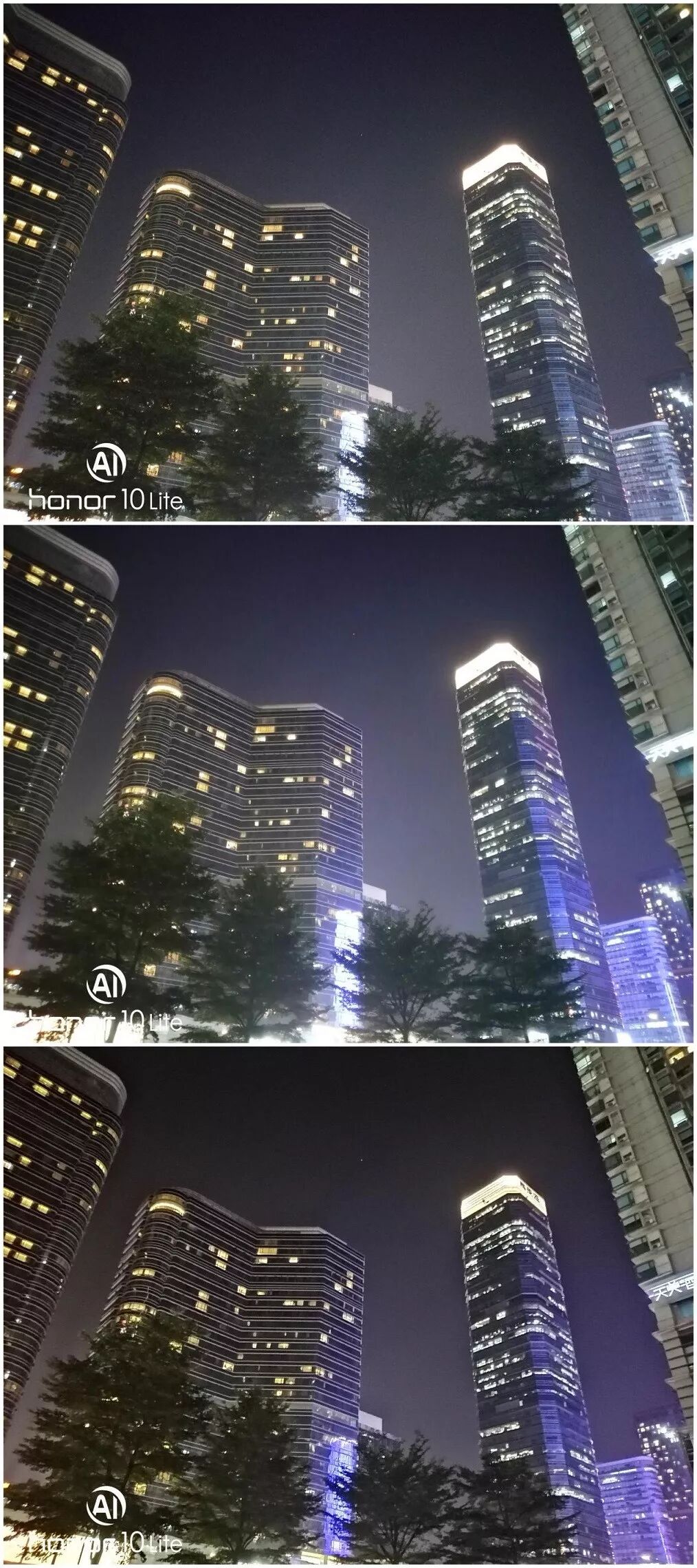 ▲从上至下依次为普通模式、AI 模式和超级夜景模式