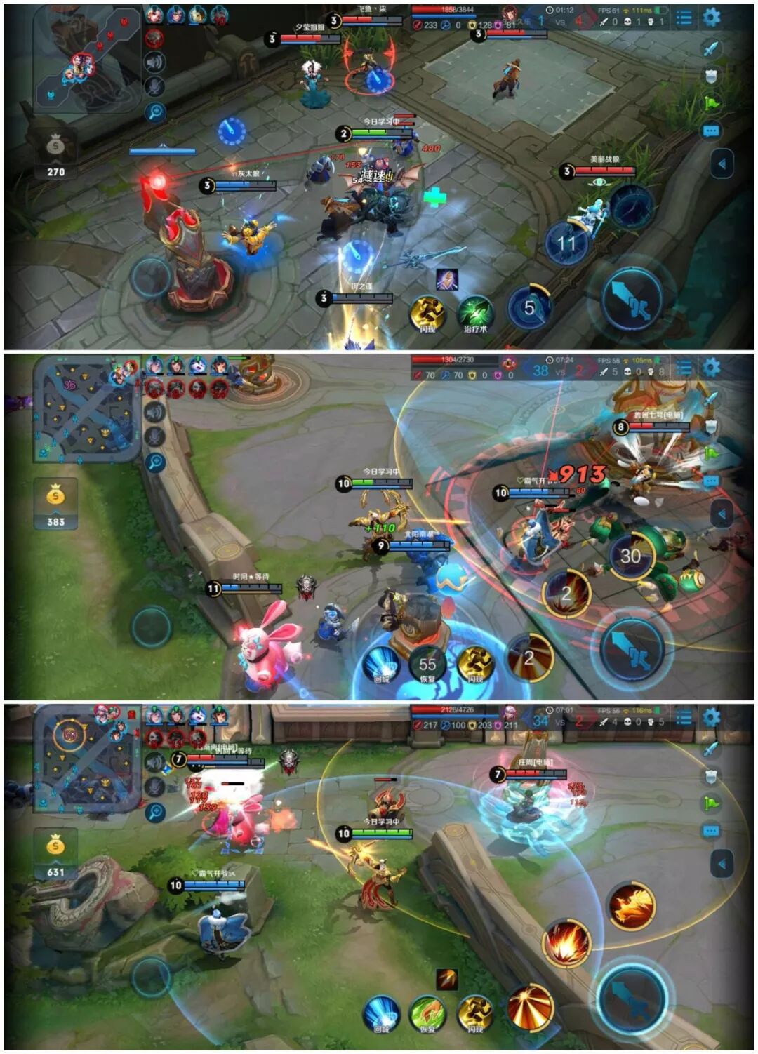 在开启高画面质量、高粒子质量、高清显示、高帧率模式、多线程模式的前提下,荣耀 10 青春版在王者荣耀中的帧率可稳定在 58~61 之间,即使在战况复杂的情况下,也能保证在每秒 56 帧以上。