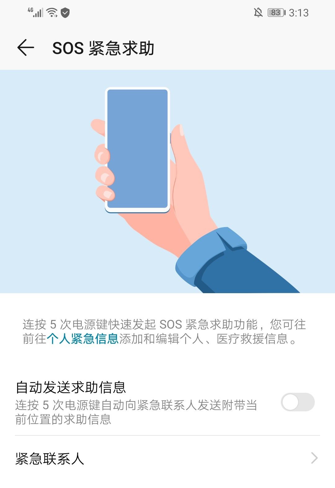 荣耀 10 青春版为大家带来了 SOS 紧急求助功能,连续按五次电源键即可将当前的位置和求助信息,发送给紧急联系人。