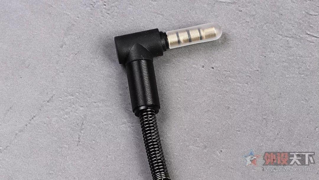音频接口部分采用常用的3.5mm插口,兼容市面上大部分手机、电脑、播放器,方便各种设备进行使用。90°直角弯插接头设计,更方便外出随身使用,弯插也更加结实耐用。插头部分设计了防滑纹路,方便用户进行插拔的操作。尾部还加装了弹簧,能够更好的保护易损的接头部分。线长约1.2m,材质也较为柔软,易于打理。