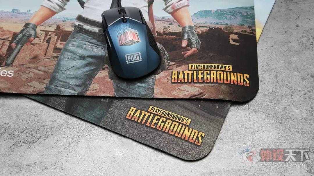 鼠标的LOGO被替换成了具有《绝地求生》特色元素的标志样式,与表面的补给箱图案观看,氛围感强烈。
