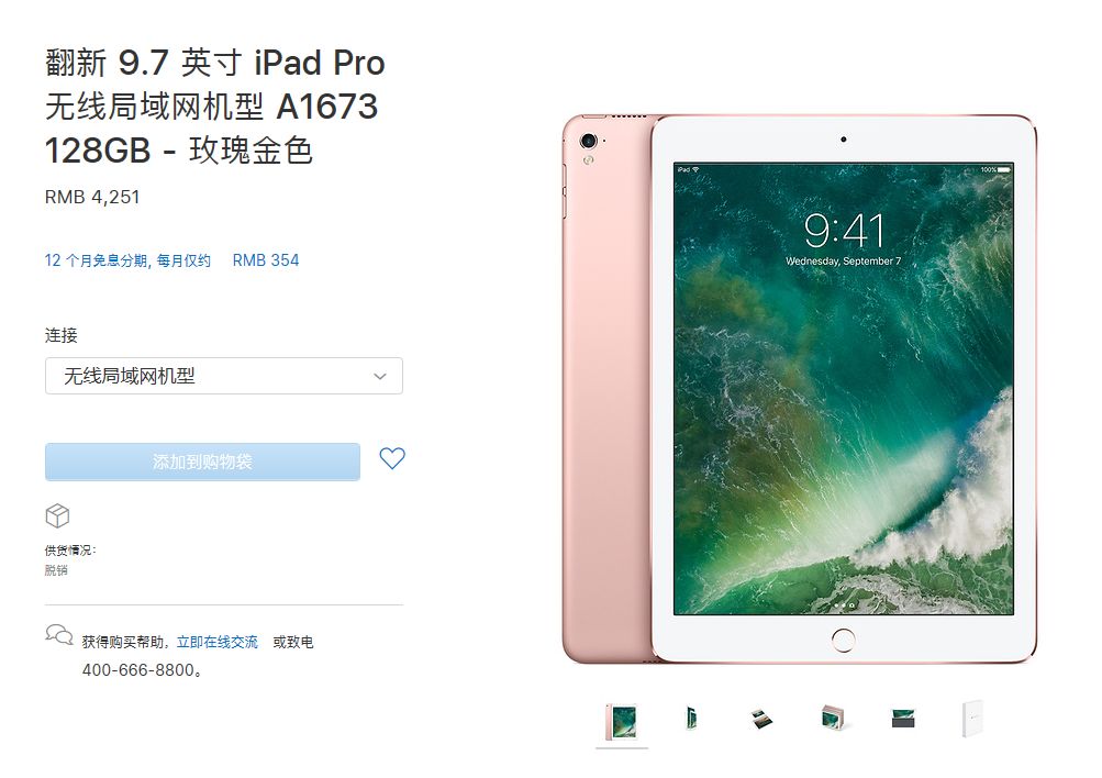 并且翻新10.5英寸iPad Pro上架了,包括64GB、256GB和512GB版本,有金色、银色、玫瑰金色、深空灰色等配色,售价5242元起,支持12期免息分期。
