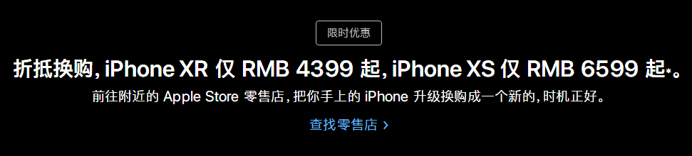 如果今天你打开苹果中国官网的首页,你会在网页头部banner处看到一条以旧换新的限时活动通告: