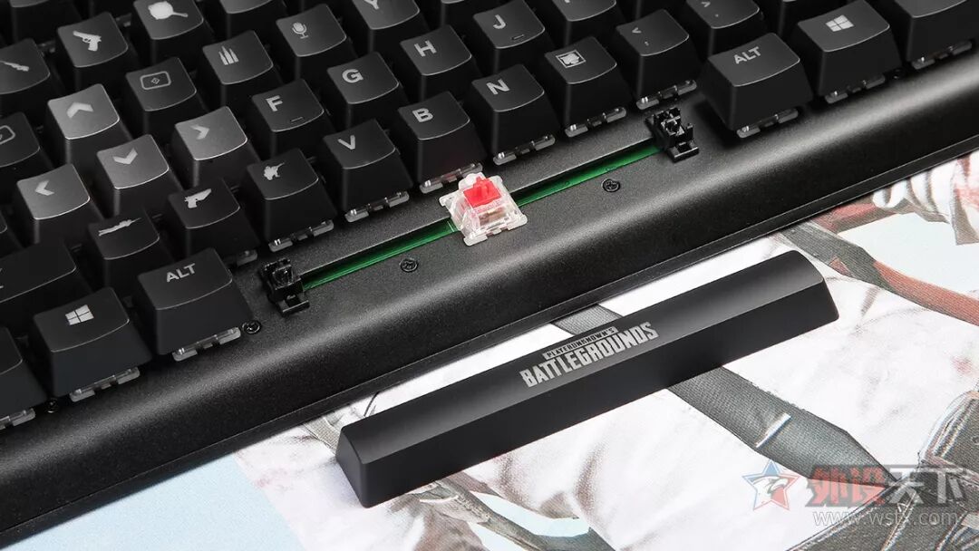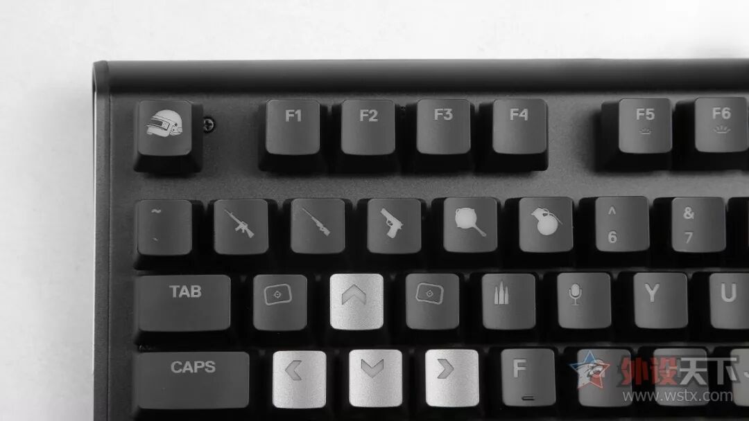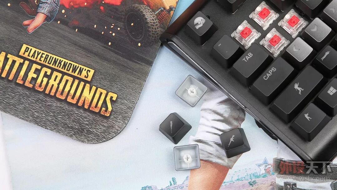 这款键盘的键帽针对《绝地求生》进行字符优化,相应的键位上都标注了游戏中对应功能的字符,让我们的操作更加顺手,对于新手来说更是减少了学习成本,效果直观。此外,这款键盘采用的是ABS涂层键帽,手感细腻,但也免不了打油现象,需要我们注意保养。
