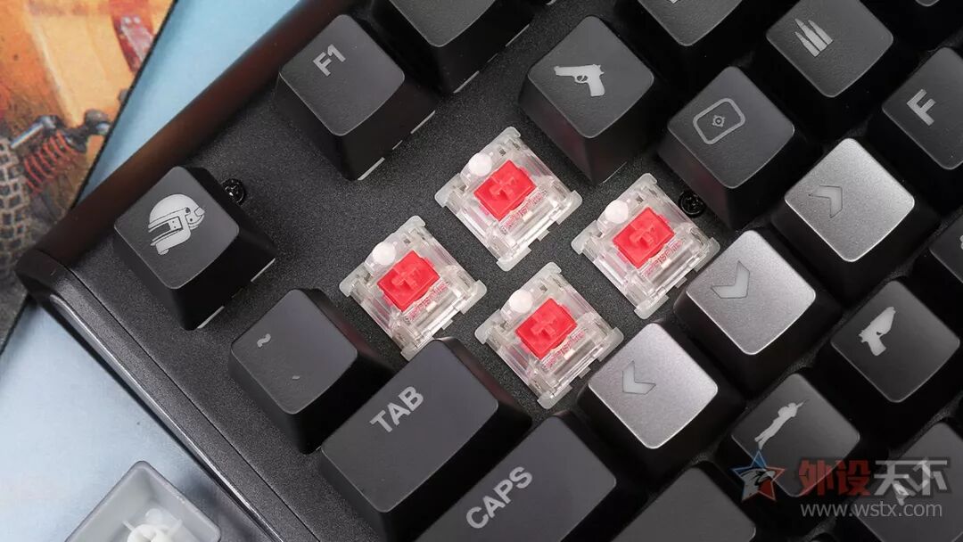 键盘依然使用了赛睿自主研发的QX2轴体,参数接近CHERRY MX轴体。外设天下收到的Apex M750 TKL PUBG Edition游戏键盘采用了QX2红轴,它拥有45cN的触发压力、2mm的触发行程以及4mm的总键程,同时拥有5000万次点击寿命,耐用度优秀。