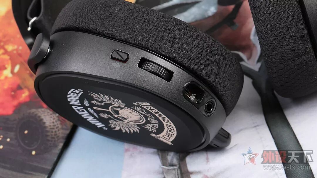 它的麦克风为伸缩麦克风,位于左耳一侧,麦克风外壳为镜面和普通ABS材质拼接,线材可以自由弯曲。它采用了ClearCast双指向麦克风,而耳机的接口和按键位于左侧耳机单元外壳的侧后方,分别有耳机分享接口、耳机线接口、音量控制、麦克风静音按钮。其中它的耳机线接口没有采用常用的3.5音频接口,转而采用赛睿专用接口,可以保证更充足的供电。