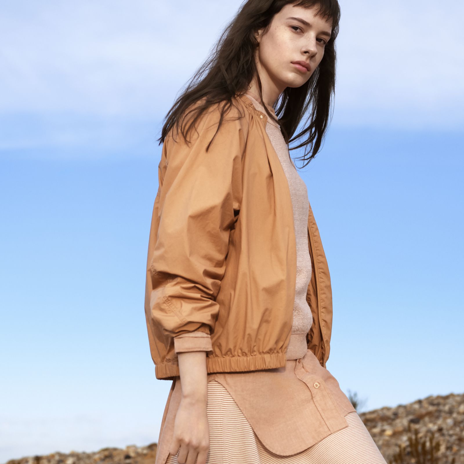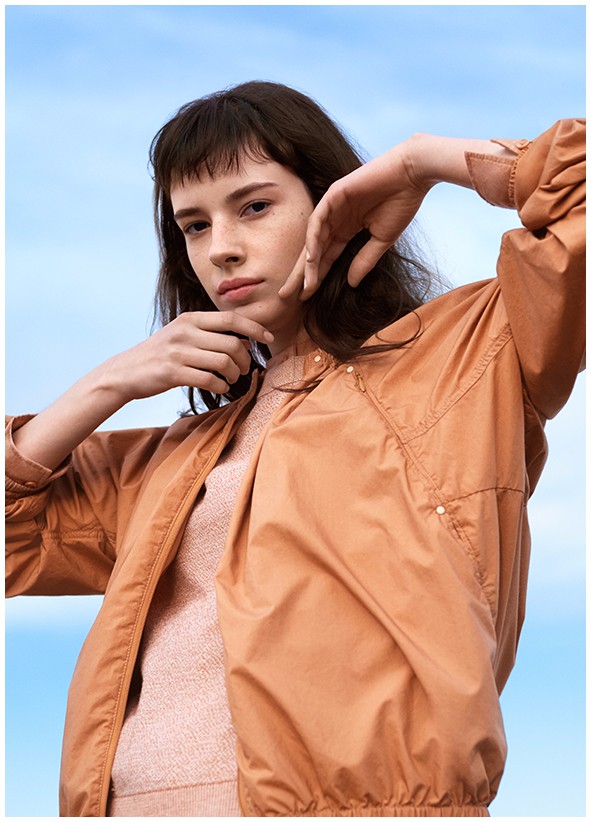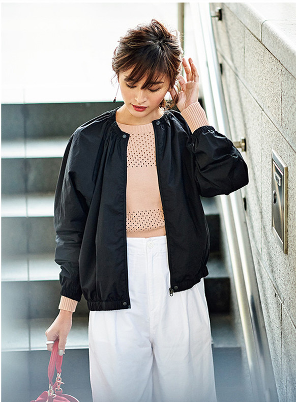 还是得扯到上一季的U,记得那件可以两面穿的MA-1吗?小编个人觉得此款无领茄克其实就是薄款的MA-1,虽然少了一些MA-1的元素,但更适合春季的气候。流畅的肩形更显时髦,手腕和下摆处的松紧绳设计摆脱了臃肿感而多一份干练,无领的设计让搭配选择更加多样,是十分值得入手的单品。
