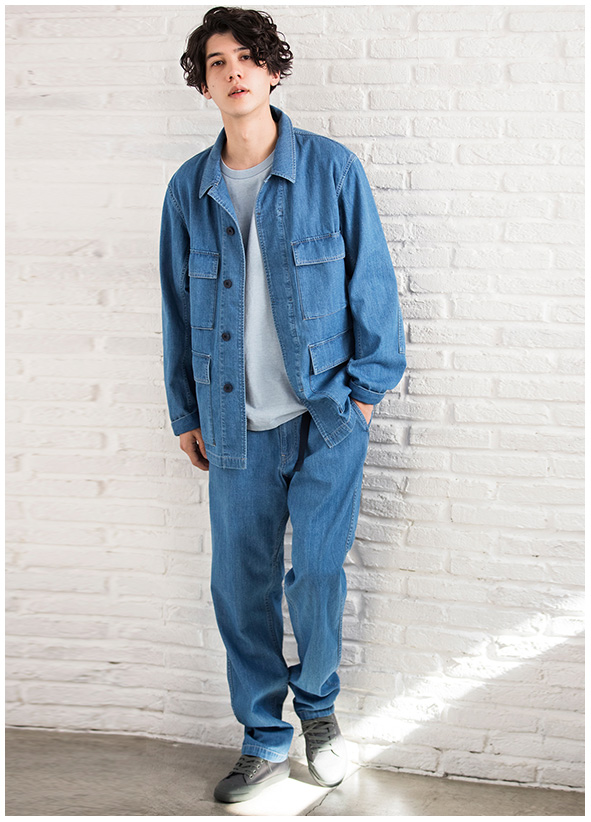 其实U系列第一季发出的单品中,很多女性朋友都看上了男装的一款靛青染裤子。那么何不尝试一下boyfriend style呢?这件男友款九分牛仔裤就是很好的一个选择。无论是面料选择还是细节处的设计都与男生的工装设计十分相似。九分裤加稍阔腿的设计搭配起牛仔外套、卫衣什么完美适合。当然了,较瘦的男生也可以选择哦。