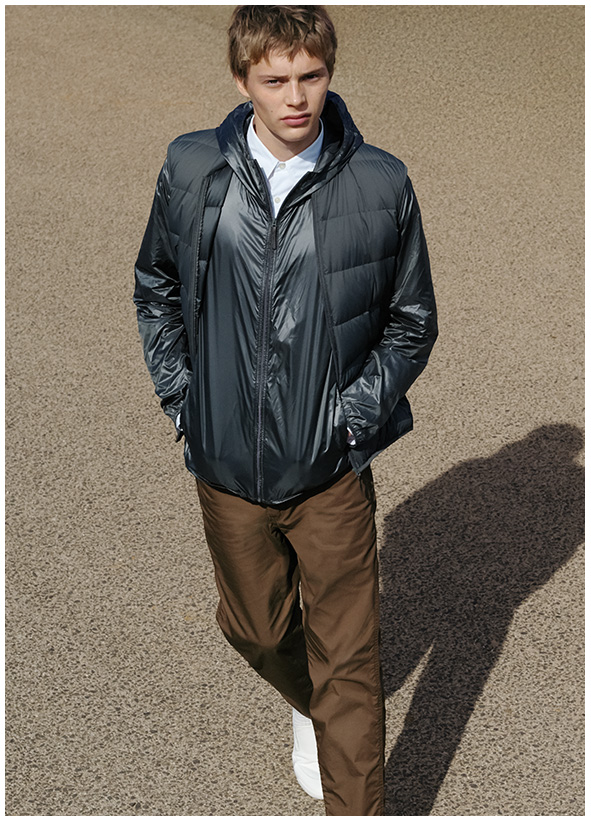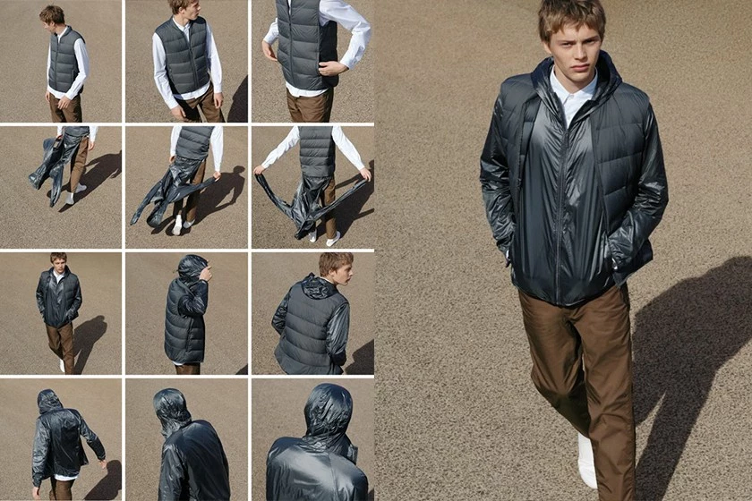 此款两用羽绒连帽外套可以说是“新功能美学”的代表作品。夹克/马甲两种形态的自由转换设计简直脑洞大开,却不得不说非常适合在乍暖还寒春天穿着。并且夹克形态的防风衣是防水的!还能档点雨,非常实用。而且很难得的还保持了一定的美感,不至于过分臃肿而失去设计感,出色的诠释的“新功能美学”的概念。
