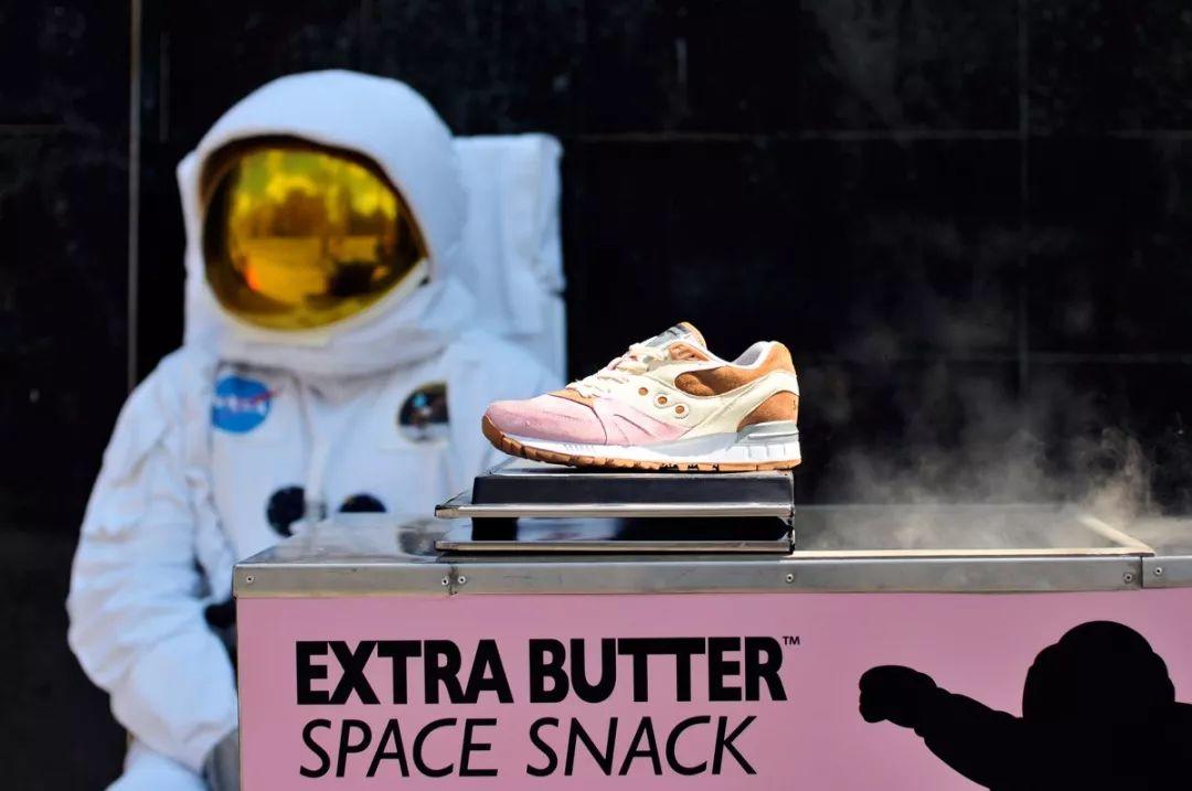 宇航员也是人,自然逃不过吃喝之事,这双Butter x Saucony Shadow Master“Space Snack”就以宇航员食物冻干冰激淋为灵感打造,粉嫩的配色光是看着就让人食欲大开,不知道真正的宇航员食物是什么味道的呢?