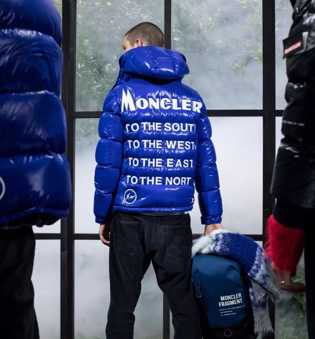 外型:标志性的Moncler红蓝色蓬松外表,但所有的细节都是藤原浩式。Logo里的高卢雄鸡标志被Fragment Design的双闪电代替,Moncler的字体也变成复古样式。而不管是图形排版处理,还是Fragment的照明螺栓标志,这是专为潮流玩家隐藏的小彩蛋。
