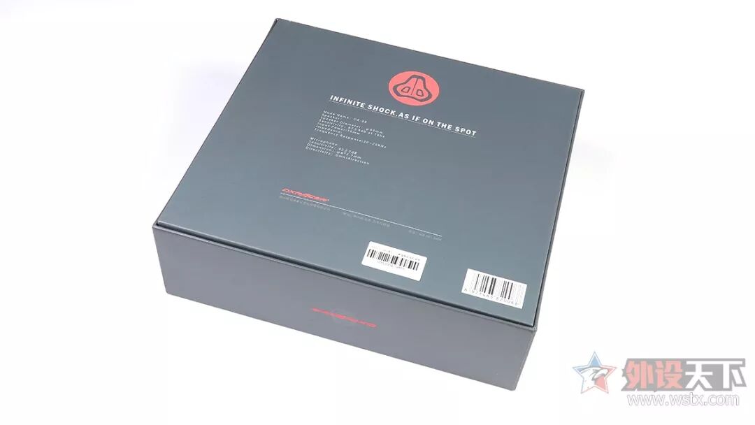 迪锐克斯 DXRACER DX68竞技游戏耳麦的外包装盒采用了灰底色设计,包装盒的正面是耳机的产品展示图和耳机名称,包装盒背面则额外列出了耳机的生产厂商信息和主要卖点,方便我们查阅耳机相关产品信息。