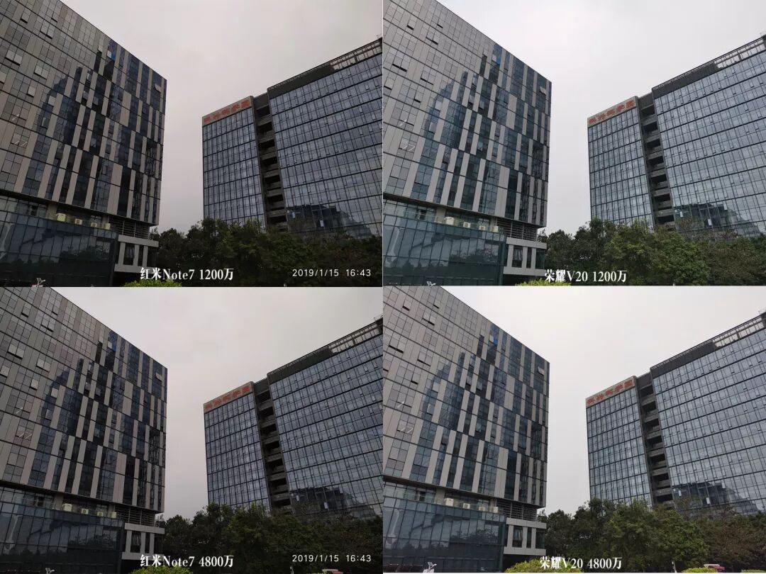 红米Note 7整体有点偏红。荣耀V20曝光高于红米Note 7,很好的还原了当天的下午,宽容度领先红米Note 7,观感也更佳。