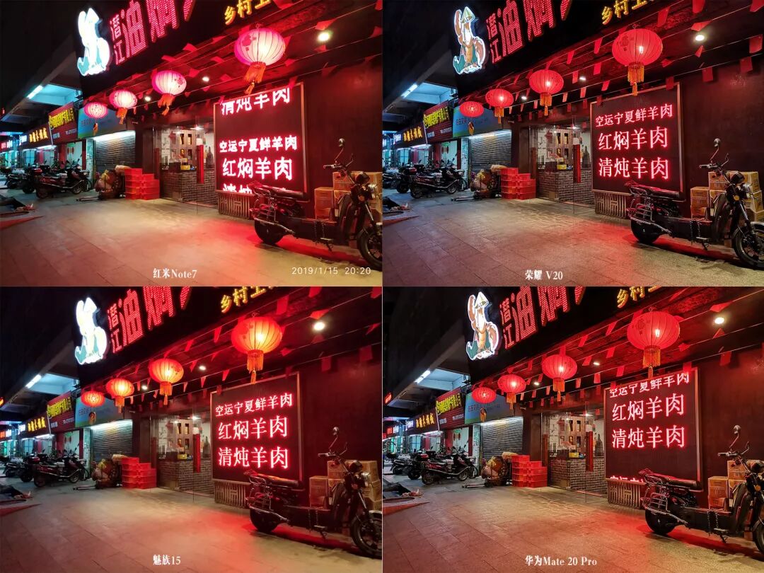 到了极限弱光场景,你大爷还是你大爷,撇开华为Mate 20 Pro不说,魅族15的IMX380还是要更胜一筹,无论是画面亮度、解析力和噪点控制,魅族15都拿出了旗舰级别的表现,红米Note 7在这里白平衡有点偏绿,极限弱光下和荣耀V20还有比较大的差距。