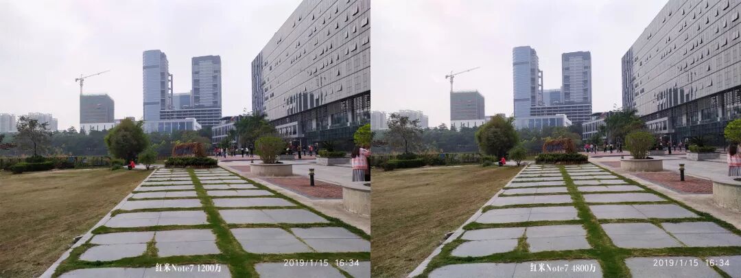 结论:红米Note 7上的4800万并没有提升多少解析力,照片观感相差无几,反而开启后暗部会增加彩色噪点。(日常推荐只用1200万像素输出照片。)