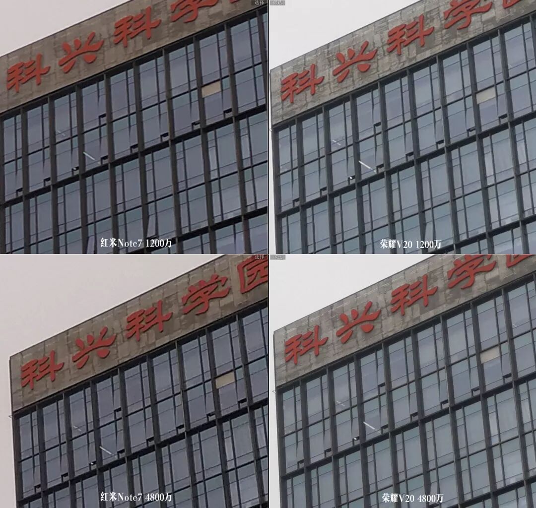 从上面的对比可以看出来,在白天场景下,红米Note 7是不如荣耀V20的IMX586,无论是输出1200万,还是4800万。