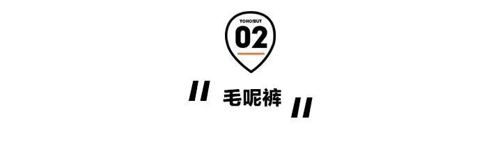 毛呢裤的保暖效果不亚于灯芯绒,裤型的选择也很多。格纹毛呢裤、阔腿毛呢裤、毛呢西裤、九分裤,基本上你能想到的裤型都是应有尽有。根据面料的厚度,就算不穿秋裤也不会冷的!当然,秋裤+毛呢裤能让你如同身在夏天一般。如果穿九分裤的话一定要注意脚踝的保暖哦~