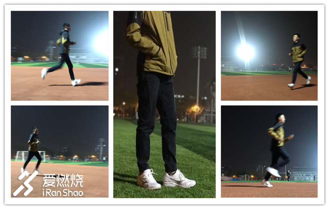 下图是在石砖路跑步和天桥台阶测试。上下台阶测试证明出足后跟的包裹性比较好。