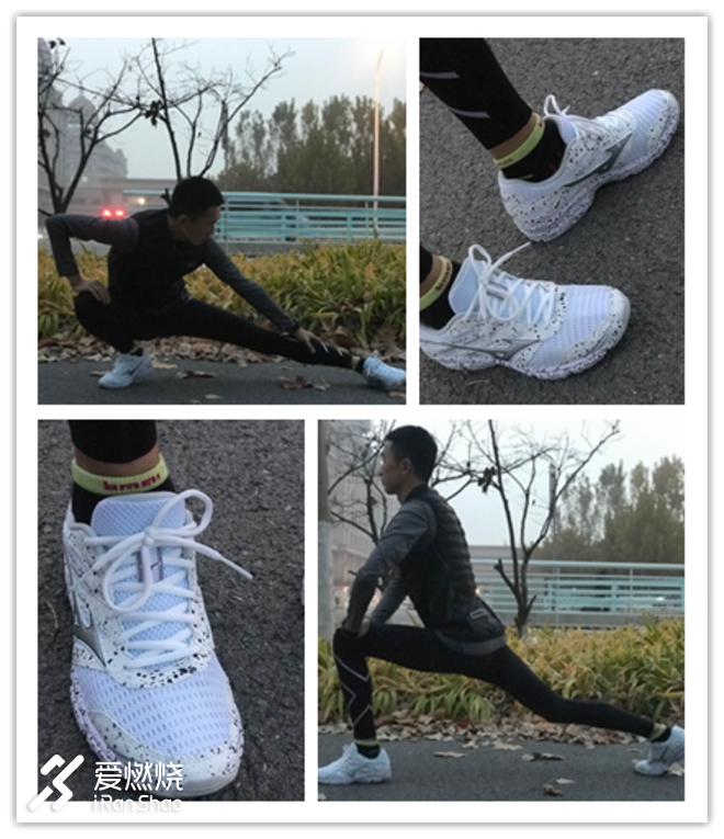 笔者收到产品比较晚,拿到鞋后在平时去学校以及休闲的时候都在试穿。加上跑步体验,穿鞋总共有一周左右。初次上脚的时候,鞋底是比较硬的。经过操场跑步、公园石砖路走跑、柏油公路跑、台阶测试这些阶段下来,鞋子还算是软了一些,中底也基本适应了我的脚型。