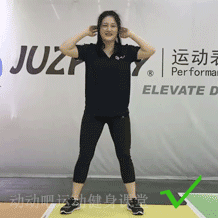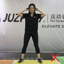 2.双手轻轻放在耳旁,双脚紧抓地面,脚尖前勾。