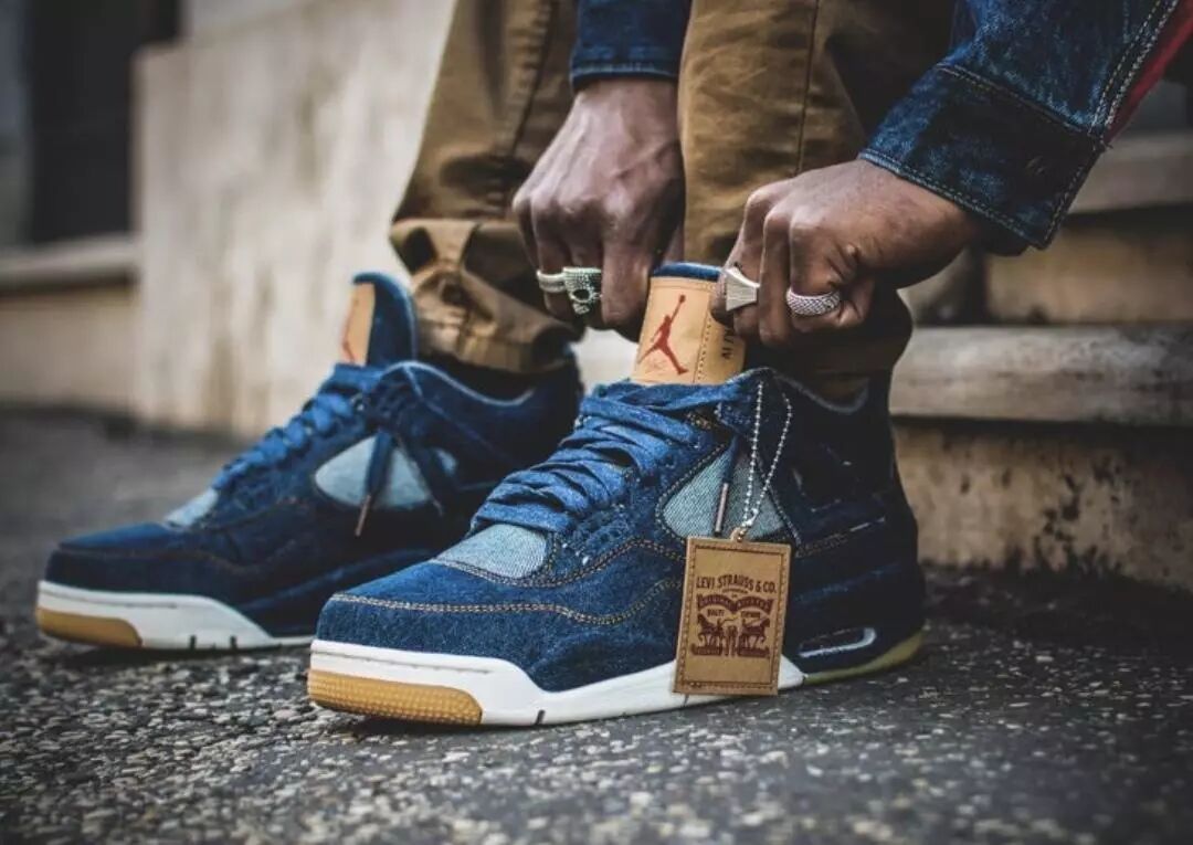 丹宁蓝我相信应该是很多人最喜欢的蓝色了,就这么说吧,谁的衣柜里面没有一条丹宁蓝的牛仔裤,牛仔裤因为百搭 耐穿,舒适深受人们的喜爱,而李维斯身为牛仔界的老大哥,这次和aj4的合作肯定是无可挑剔的,鞋身才用的是丹宁的材质加的牛筋底,使整个鞋子充满了硬汉的气质 加上鞋身的丹宁布料是可以磨损的,这就使得你在穿着使用的过程中,鞋面会产生一定的模式,只要你一直在穿,穿的越久,它就越好看越适合你。